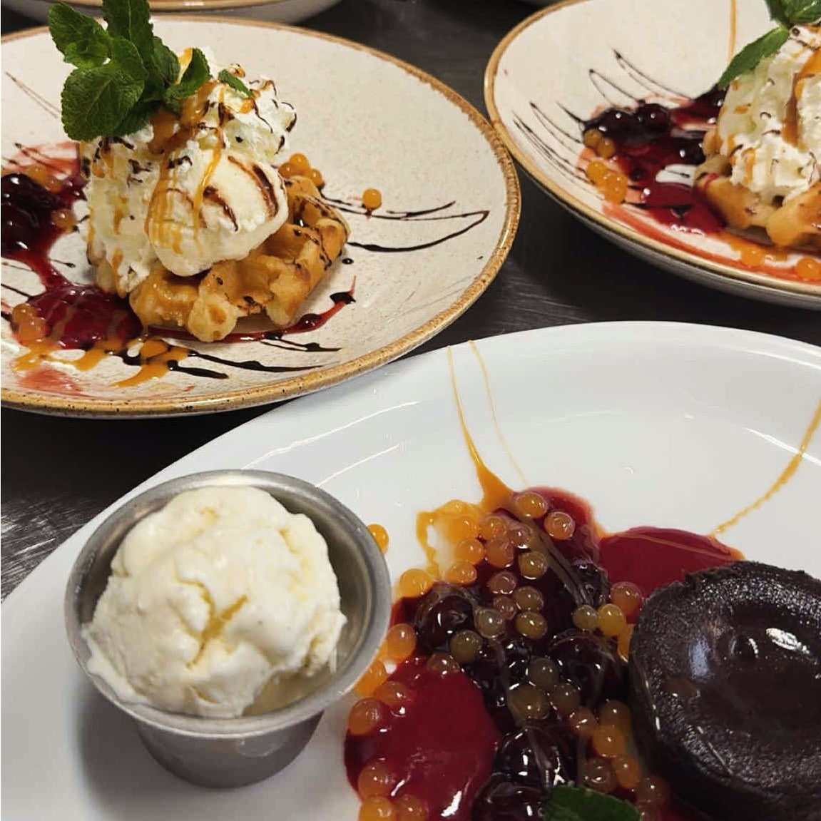 Chocolat fondant, served with vanila ice cream berries sauce